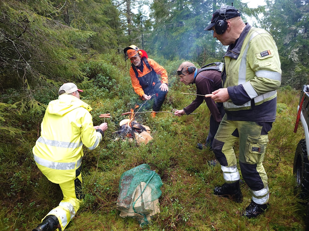 Bålet er tent, pølsepinner er spikka og grillinga i gang. Dette er god gammeldags dugnad. Og regn i lufta.